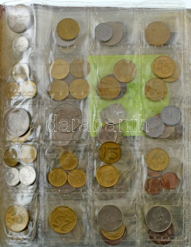 368db-os vegyes külföldi érmetétel, benne Thaiföld, India, Izrael, Laosz, Törökország, stb. érméi, közte Brit-India 1936. 1/12A bronz + 1/4A bronz "V. György", stb. kétgyűrűs albumba rendezve T:vegyes