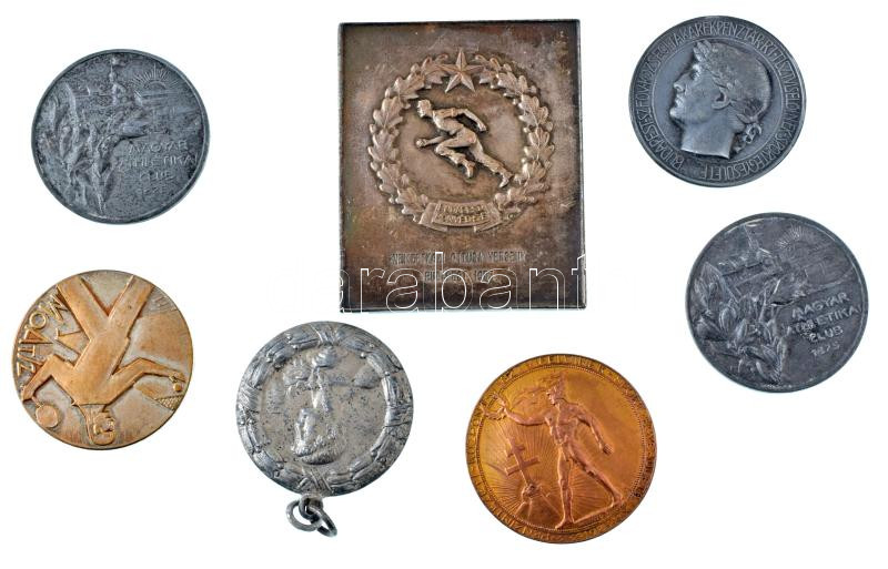 Leírás: 7db-os sport díjérem-tétel, közte Erdey Dezső (1902-1957) 1929. "Budapest Szfőv Községi Takarékpénztár Rt. Tisztviselőinek Sportegyesülete / KTSE 1929. " fém díjérem (35mm) + 1931. "Pénzintézeti Központ Tisztviselőinek Sport Egyesülete " Cu díjérem "Arkanzas B.Pest" gyártói jelzéssel, hátoldalán "II. hely 1930. VI. 2 " gravírozással (38mm) + 1953. "Budapesti Honvéd SE" ezüstözött bronz plakett, "Nemzetközi öttusa verseny - Budapest 1953 " gravírozással (49x60mm) T:AU-VF