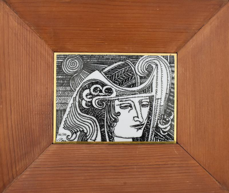Leírás: Hollóházi Szász Endre porcelánkép, sorszámozott 216/500, minimális kopással. 9x11,5 cm, fa keretben.