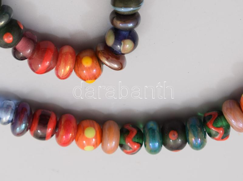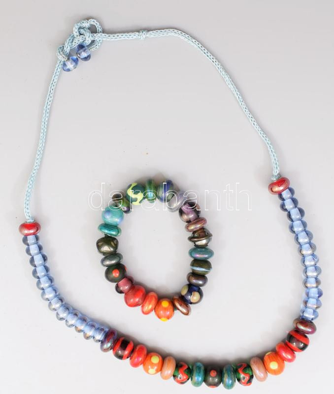 Leírás: Horváth Márton (1941-2013): Karkötő és nyaklánc szett. Színezett üveg, jelzés nélkül, proveniencia: az alkotó ajándéka.