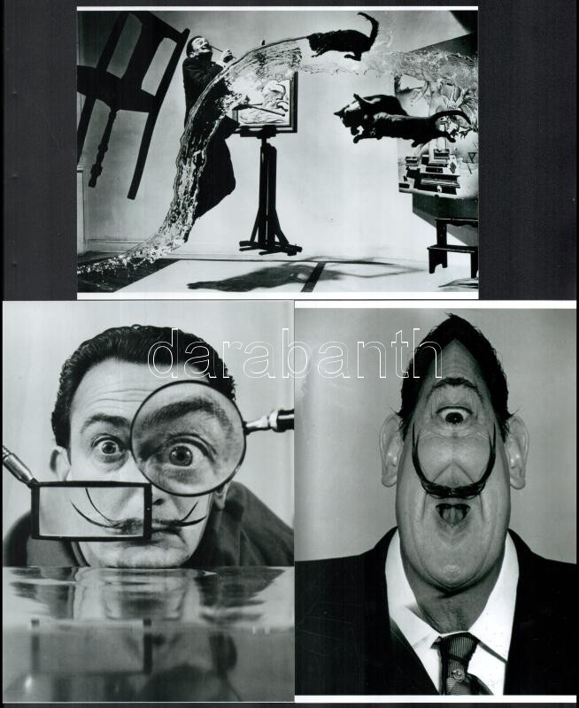 Dali, Salvador (1904-1989) katalán - spanyol szürrealista festőművész, aki fényképezés közben gyakran önmagát rendezte, vagyis kitalálta előre a képet, s ehhez hívott fotós segítséget, eltérő időben készült felvételek, 3 db modern nagyítás, jelzés nélkül, 21x15 cm és 15x21 cm