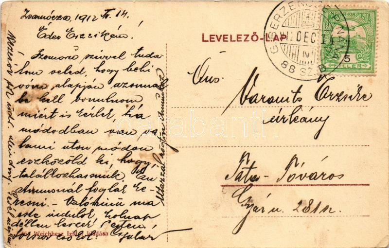 1912 Zsarnóca, Zarnovica; Weichherz Izidor kiadása (EK) + "G. BERZENCZ... https://www.darabanth.com/hu/482-Gyorsarveres/482.0/Kepeslapok/Erdely~2000005/1912-Zsarnoca-Zarnovica-Weichherz-Izidor-kiadasa-EK-plus-G-BERZENCZE-P-NANA-88-SZ-B~II3294630