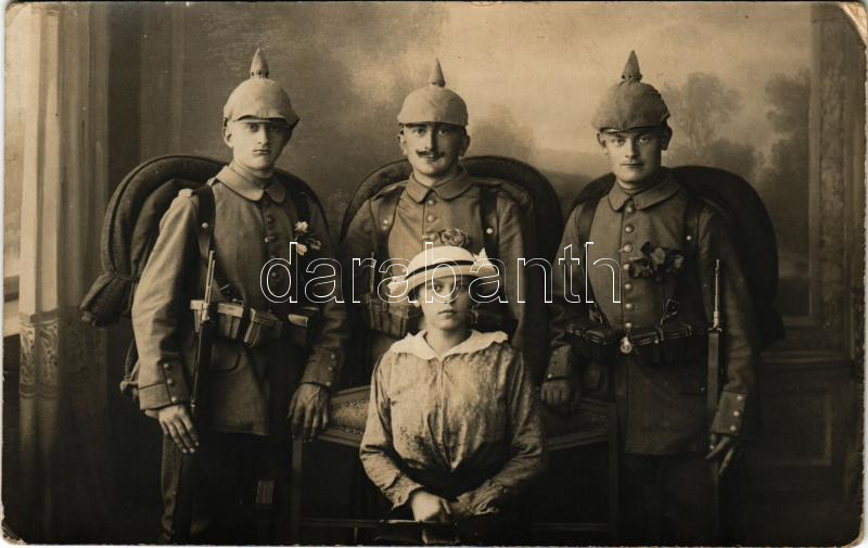 Német katonák és egy hölgy / WWI German military, group of soldiers wi... https://www.darabanth.com/hu/482-Gyorsarveres/482.0/Kepeslapok/Katonai~2000065/Nemet-katonak-es-egy-holgy-WWI-German-military-group-of-soldiers-with-lady-photo-EK~II3278332
