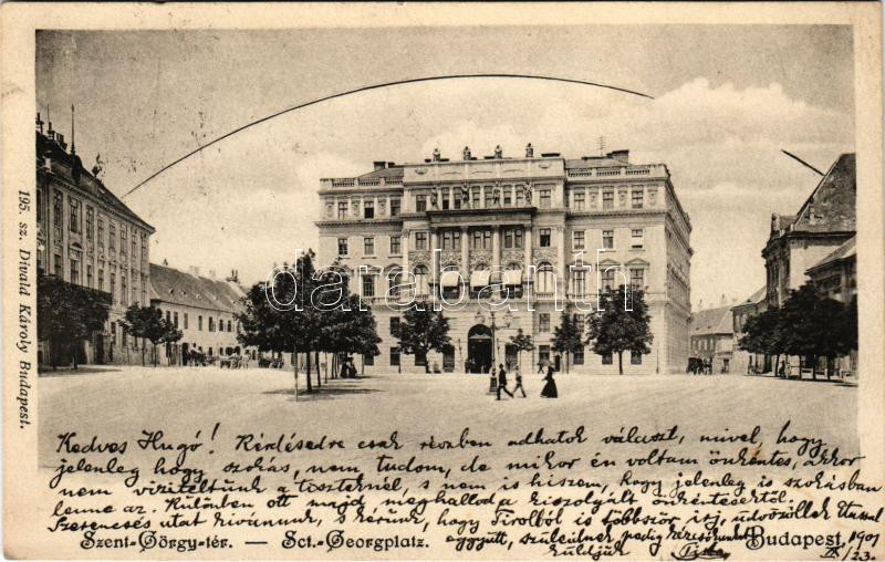 1901 Budapest I. Szent György tér, Honvédelmi Minisztérium. Divald Kár... https://www.darabanth.com/hu/482-Gyorsarveres/482.0/Kepeslapok/Magyarorszag~2000004/1901-Budapest-I-Szent-Gyorgy-ter-Honvedelmi-Miniszterium-Divald-Karoly-195-EK~II3294166