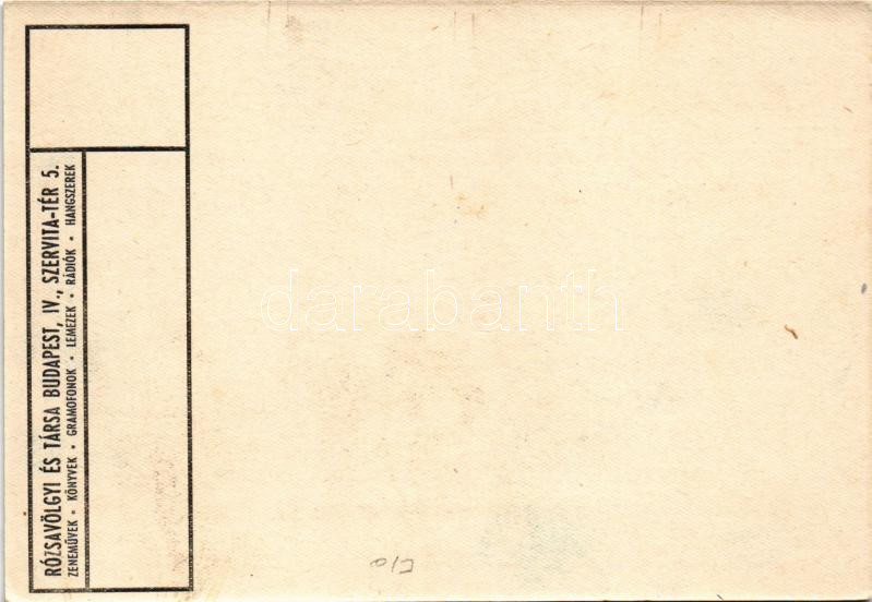 Rózsavölgyi és Társa zeneművek, könyvek, rádiók, hangszerek, gramofono... https://www.darabanth.com/hu/482-Gyorsarveres/482.0/Kepeslapok/Reklam~2000085/Rozsavolgyi-es-Tarsa-zenemuvek-konyvek-radiok-hangszerek-gramofonok-es-lemezek-Szervita-ter~II3295445