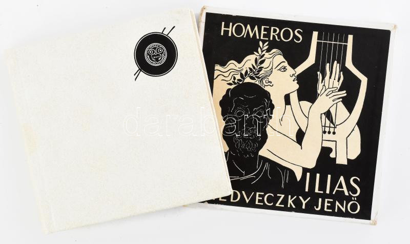 Leírás: Medveczky Jenő: Homeros - Ilias. (Minikönyv). Bp., 1973, Képzőművészeti Alap. Egészoldalas, fekete-fehér illusztrációkkal. Magyar, angol és német nyelven. Kiadói műbőr-kötés, kiadói kartontokban.