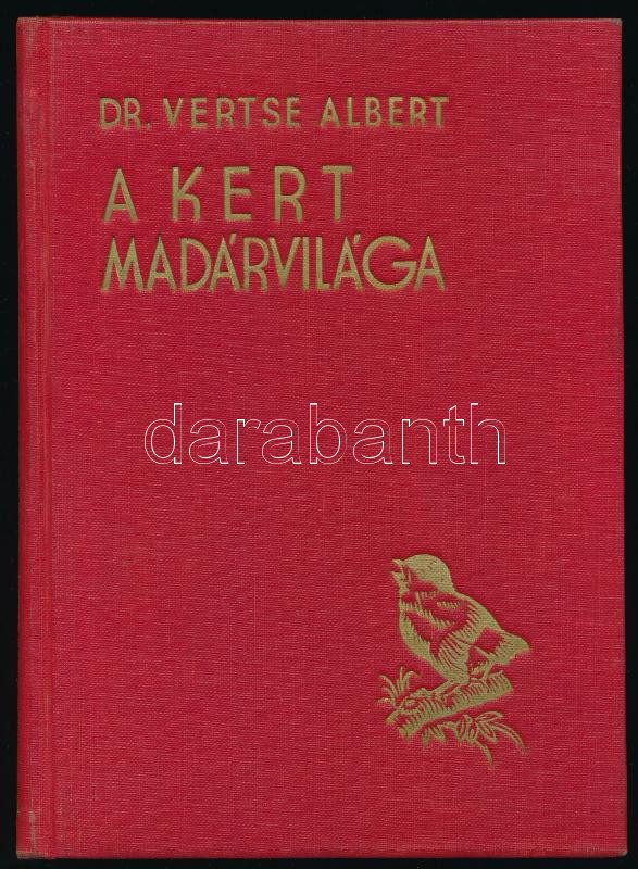 Dr. Vertse Albert: A kert madárvilága. Dr. Csörgey Titusz, Vezényi Elemér és Nécsey István festményeivel. Bp., 1941, Növényvédelem és Kertészet, 128 p. A 65. oldaltól egészoldalas képtáblákkal. Kiadói aranyozott egészvászon-kötés, jó állapotban.