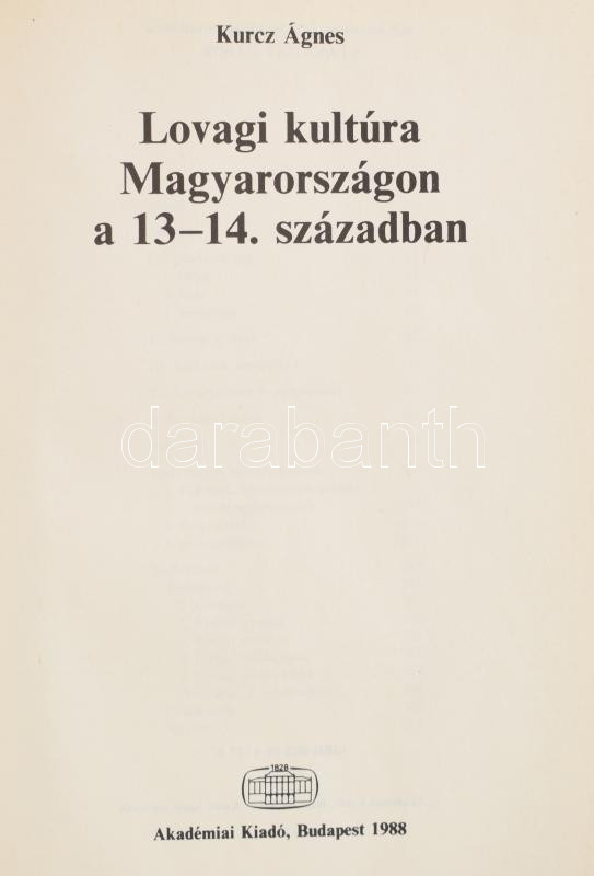 Kurcz Ágnes: Lovagi kultúra Magyarországon a 13-14. században. Bp., 19... https://www.darabanth.com/hu/482-Gyorsarveres/482.0/Konyvek/Konyvek-Tortenelem~500019/Kurcz-Agnes-Lovagi-kultura-Magyarorszagon-a-13-14-szazadban-Bp-1988-Akademiai-Kiado-Kiadoi~II3276506