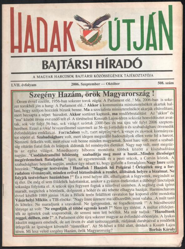 Leírás: 2006 Hadak útján 3 db bajtársi híradó újság