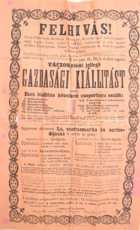 1891 Pest vármegyei mezőgazdasági kiállítás nagy méretű hirdetménye. P... https://www.darabanth.com/hu/482-Gyorsarveres/482.0/Mutargy-papirregiseg-egyeb/Plakat~500014/1891-Pest-varmegyei-mezogazdasagi-kiallitas-nagy-meretu-hirdetmenye-Plakat-erosen-hajtva-60x90-cm~II3272033