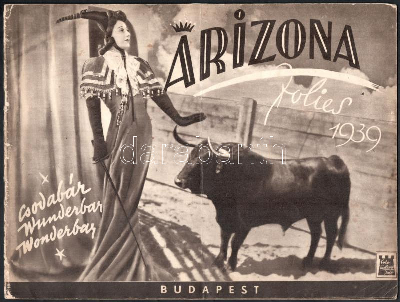 1939 Arizona csodabár (Bp., Nagymező u. 20. - Mai Manó Ház épületében) képes reklámkiadványa. Bp., Tolnai-ny., 16 p. Kiadói tűzött papírkötés, a borítón némi kopással.