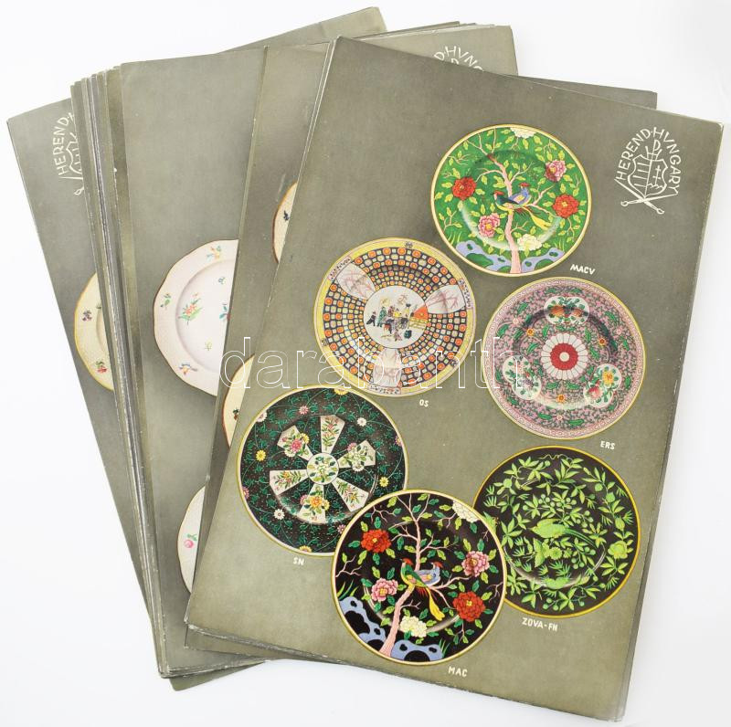 Leírás: Herendi különféle mintájú porcelán tányérokat bemutató színes nyomtatványok, összesen kb. 40 db, közte duplumokkal, 31x20,5 cm