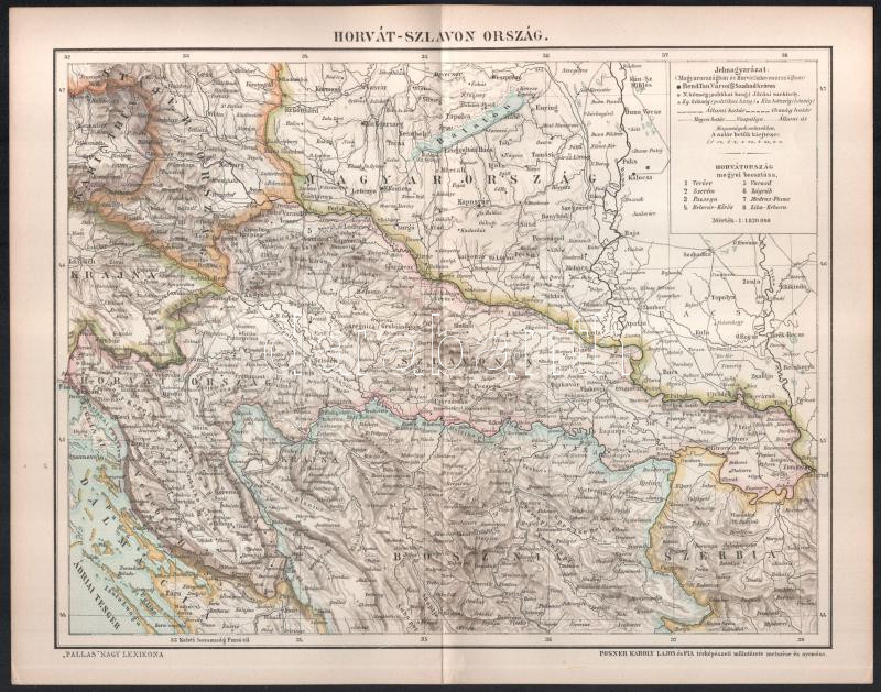 Leírás: cca 1900 Horvát-Szlavonország, Pallas Nagy Lexikona, Bp., Posner-ny., 21x27 cm