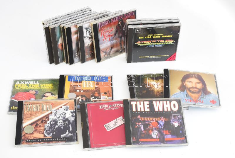 20 darab zenei CD, jó darabokkal, közte Hobo Blues Band, Takáts Tamás Dirty Blues Band, P. Mobil, Tátrai Band, The Who, Eric Clapton, Vikidál Gyula, Demjén, Dinamit, John Williams, stb.