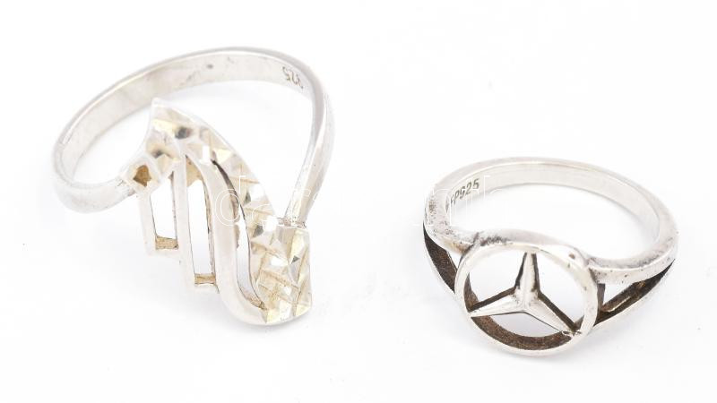 Leírás: 2 darab áttört ezüst (Ag) gyűrű, egyik Mercedes jellel, m: 48,59, 5,1g
