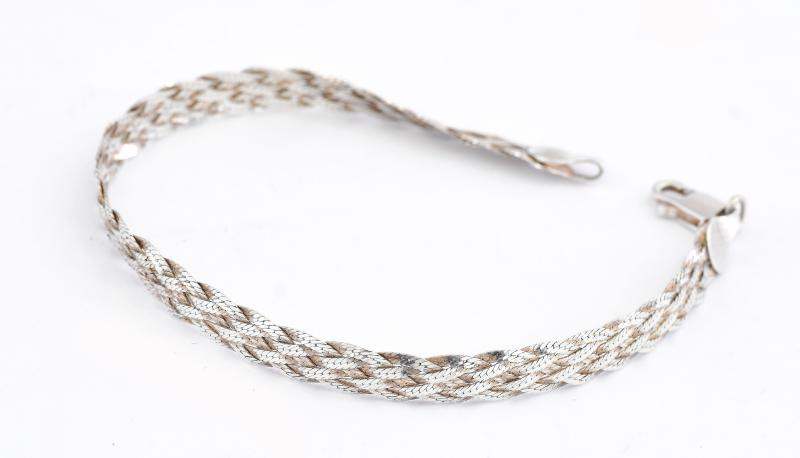 Ezüst (Ag) hatszálas fonott karkötő, jelzett, h: 18 cm, 3,8g https://www.darabanth.com/hu/482-Gyorsarveres/482.0/Nemesfem-disztargyak-ekszerek-dragakovek/Nemesfem-disztargyak-ekszerek-dragakovek~2500005/Ezust-Ag-hatszalas-fonott-karkoto-jelzett-h-18-cm-3-8g~II3294538