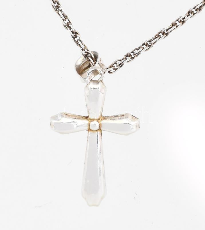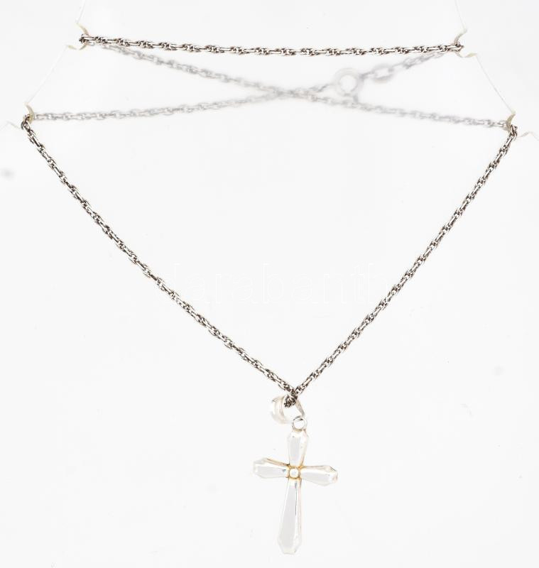 Leírás: Ezüst (Ag) walles nyaklánc, kereszt medállal jelzett, h: 40 cm, 3,9g