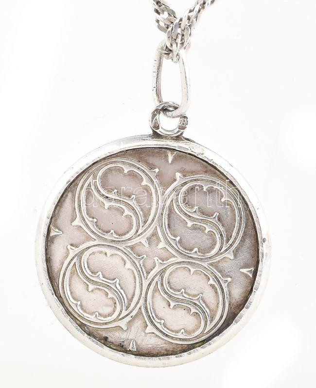 Leírás: Ezüst (Ag) walles nyaklánc, medállal, jelzett, h: 46 cm, 5,1g