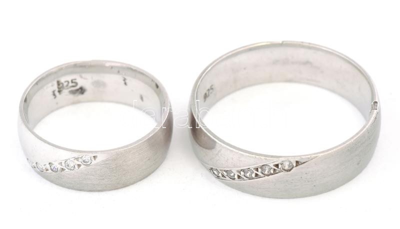 Leírás: Köves ezüst (Ag) karikagyűrű pár, jelzett, m: 48, 62, bruttó: 8,2g