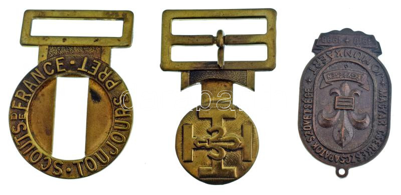 Leírás: 1988. "Magyar Cserkészcsapatok Szövetsége - Jó munkáért 1910-1988" bronz jelvény, hátlapon "44" beütéssel (52x31mm) + Franciaország DN "Franciaország cserkészei" bronz cserkész övcsat (85x20mm) T:XF