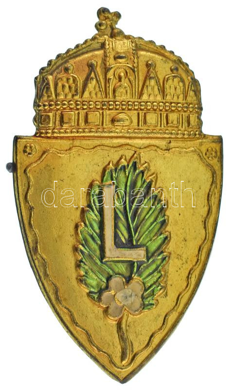 ~1930-1940. "Leány Levente" részben festett bronz sapkajelvény (55x32m... https://www.darabanth.com/hu/482-Gyorsarveres/482.0/Numizmatika/Falerisztika-Kituntetesek-jelvenyek~1000020/7E1930-1940-Leany-Levente-reszben-festett-bronz-sapkajelveny-55x32mm-T-AUXF-kihajtogatott~II3297059