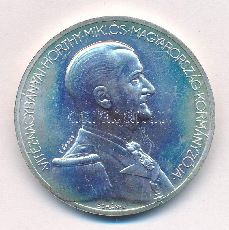 Berán Lajos (1883-1943) 1993. "Vitéz Nagybányai Horthy Miklós Magyarország Kormányzója / Végső hazatérésének emlékére - 1993. IX. 4." jelzett Ag emlékérem (32,72g/0.925/40mm) műanyag tokban, tanúsítvánnyal T:UNC kis patina