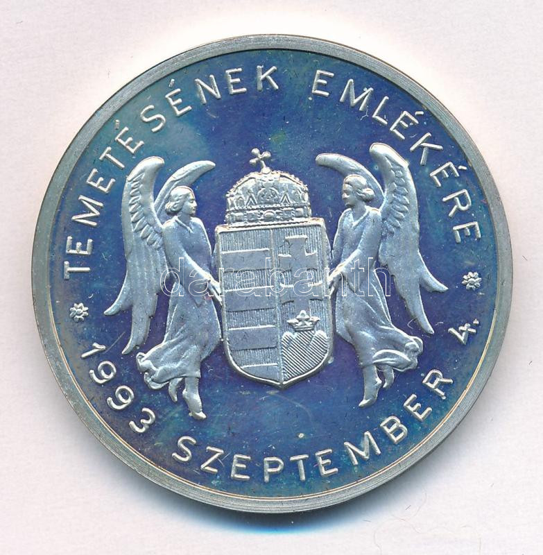 Berán Lajos (1883-1943) 1993. "Vitéz Nagybányai Horthy Miklós Magyarország kormányzója / Temetésének emlékére 1993. szeptember 4." jelzett Ag emlékérem (32,74g/0.925/40mm) műanyag tokban, tanúsítvánnyal T:UNC kis patina