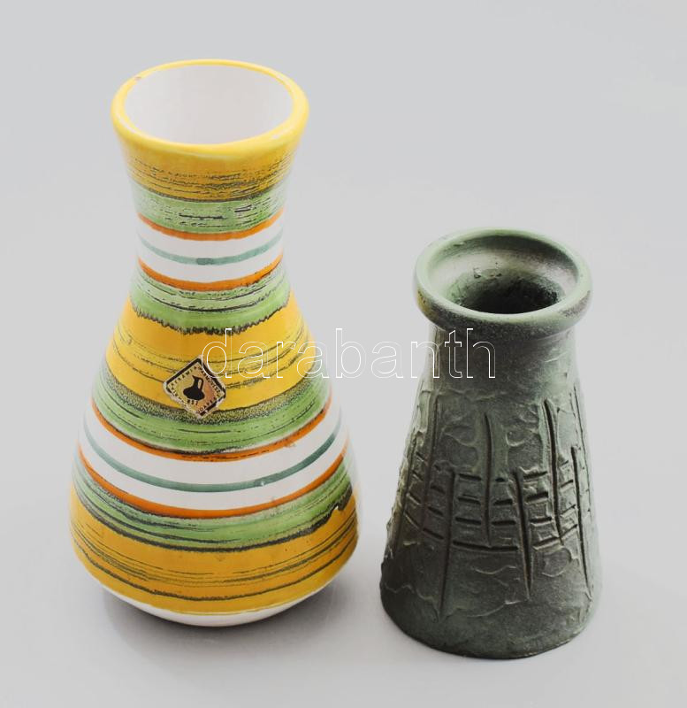 Leírás: 2 db iparművész kerámia váza, az egyik etikettel jelzett, kis lepattanással, mázrepedésekkel, m: 14 - 20 cm