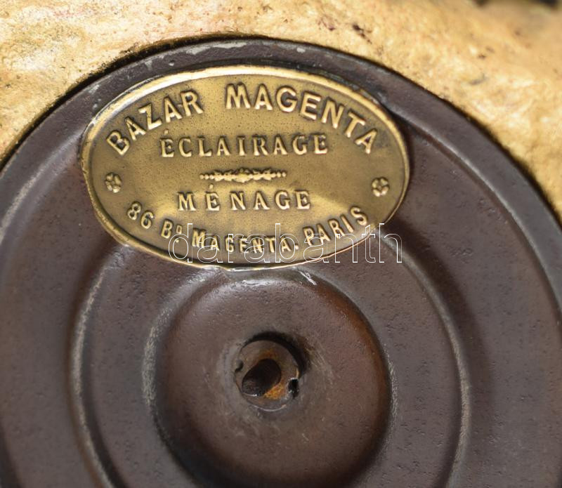 Leírás: Satsuma porcelán petróleum lámpa, francia réz szerelékkel, jelzett, m: 37 cm