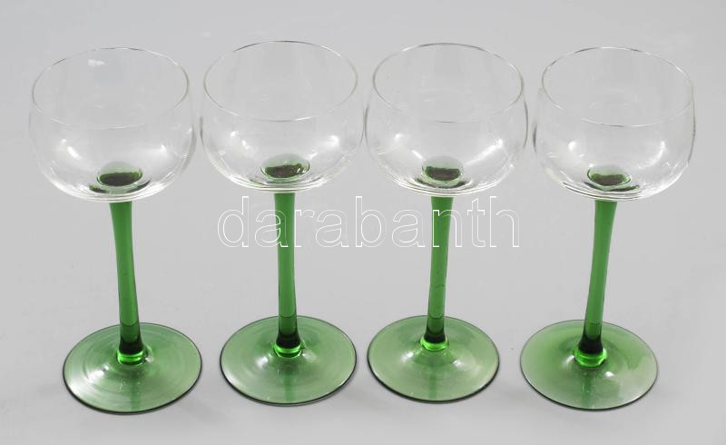 Leírás: 4 személyes borospohár szett. cca 20. sz. eleje, osztrák, zölden színezett talpazattal, hibátlan, m: 17 cm