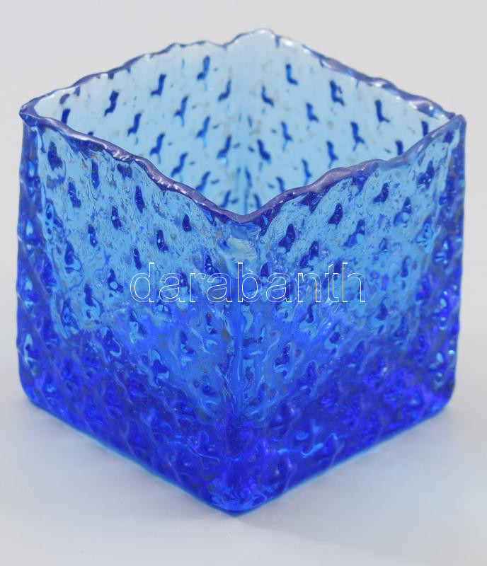 Leírás: Horváth Zsófia (1977-): Királykék blokk. Kissé színezett üveg, jelzett, hibátlan, 8x8x8 cm
