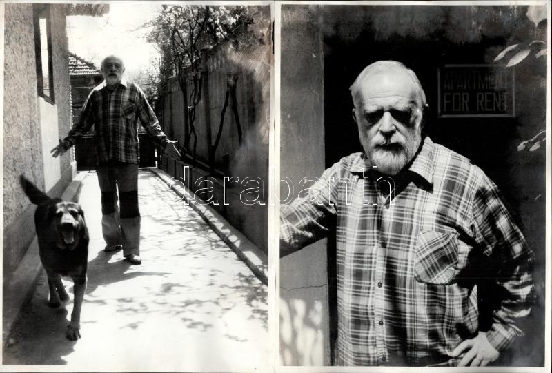 Leírás: Szász János (1927-) költő, író, műfordító, újságíróról készült felvételek, 5 db, ázásnyomokkal, foltokkal, 24×18 cm