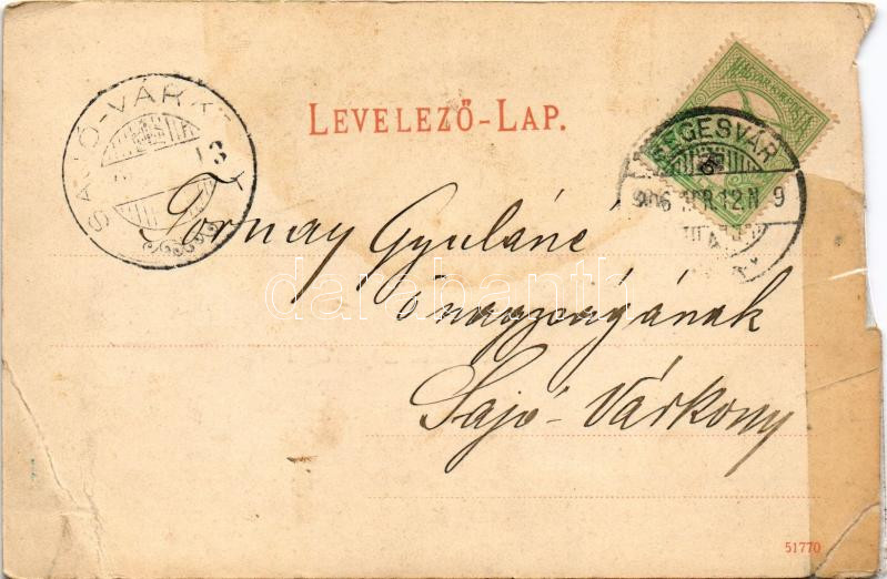 1906 Segesvár, Schässburg, Sighisoara; szentély, Jézus szíve kápolna, főoltár, Mária kápolna, római katolikus templom, belső. Szabó Jenő fényképész kiadása / church, altar, chapel, interior. Art Nouveau (r)