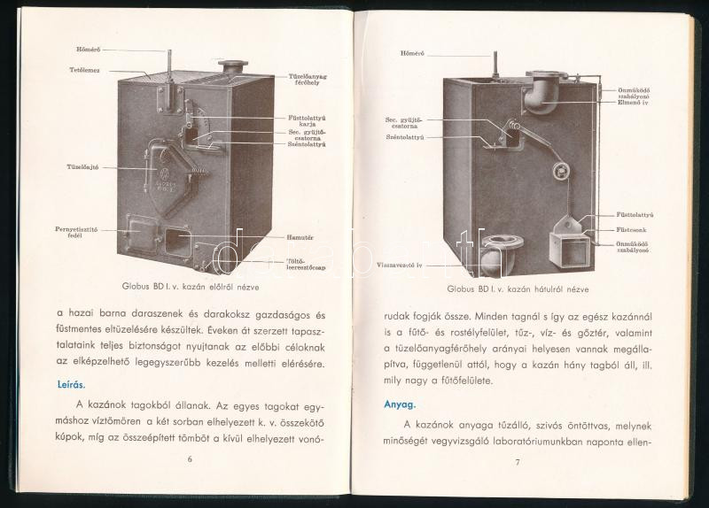 cca 1930-1935 Weiss Manfréd Acél- és Fémművei Rt. - Globus BD I. és BD IV. kazánok. Bp., Közlekedési-ny., 52 p. Fekete-fehér és színes illusztrációkkal. Kiadói aranyozott egészvászon-kötés, jó állapotban, a borítón némi kopással.