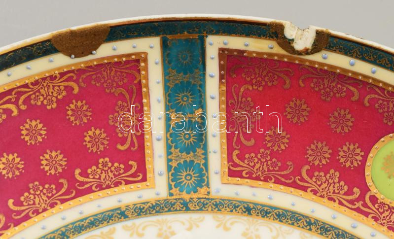 Leírás: Esztergomi emlék nagy porcelán tál. Matricás, jelzett, (Cseh ALt Wien) egy lepattanással d: 30 cm