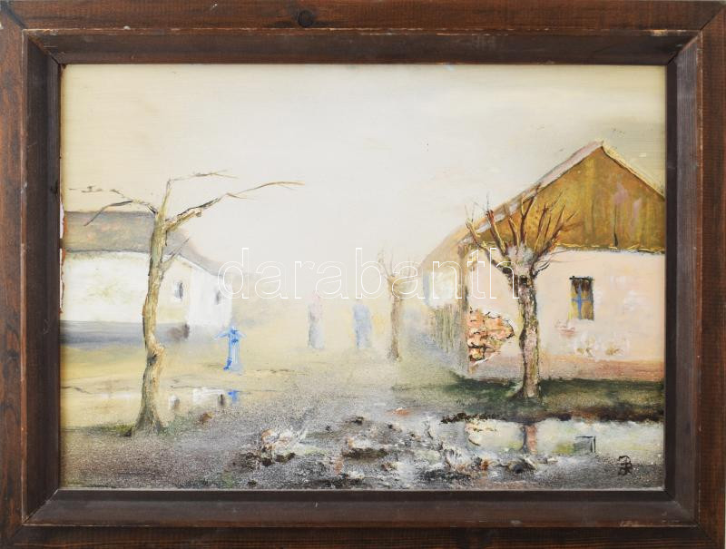 Leírás: Olvashatatlan jelzéssel: Alföldi utca. Olaj, farost. Fakeretben, 35×49 cm
