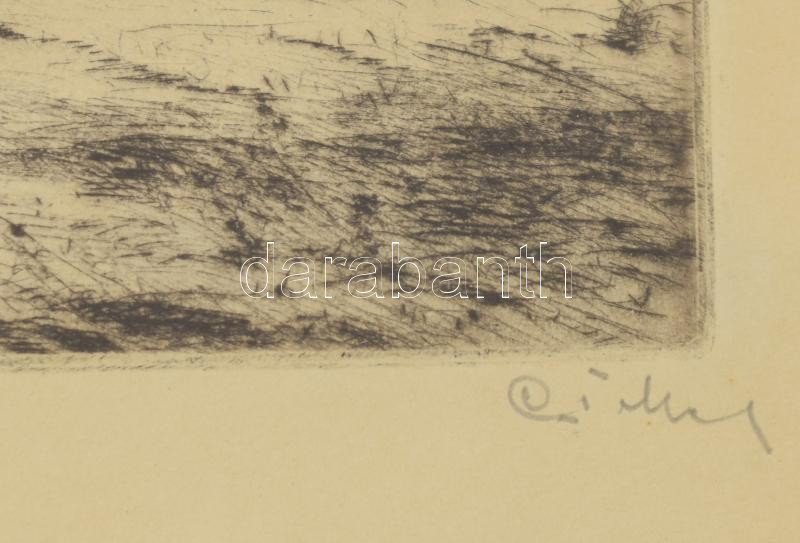 Leírás: Cs. Pataj Mihály (1921-2008): Asztag. Rézkarc, papír, jelzett. Üvegezett fakeretben, 14×18 cm