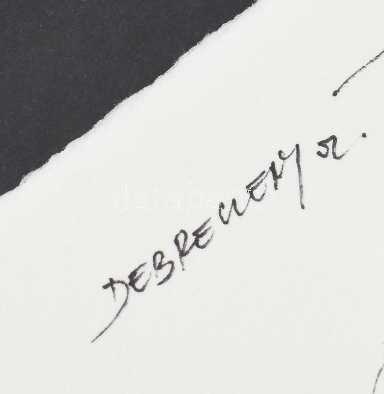 Debreczeny Zoltán (1952-): 2 db karikatúra, 2002. Vegyes technika, merített papír, jelzett, kartonra kasírozva. 21×15 cm. A tételhez tartozik egy katalógus.