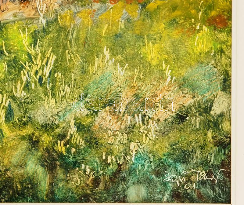 Leírás: Egri Tibor ( - ): Reggel Kékeden. Olaj, farost, jelezve jobbra lent. Dekoratív, kissé kopott fakeretben, 50×40 cm