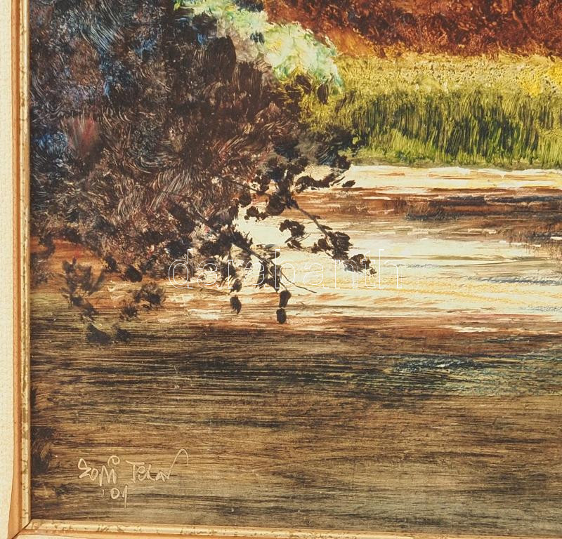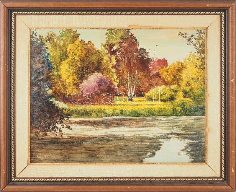 Leírás: Egri Tibor ( - ): Vízpart. Olaj, farost, jelezve jobbra lent. Dekoratív, kissé sérült fakeretben, 40×50 cm