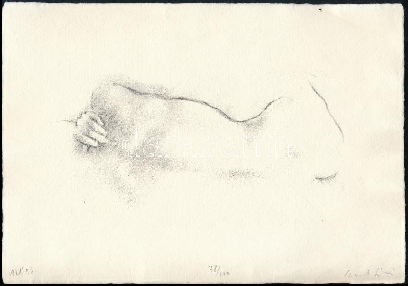 Leírás: Egyed László (1953-2019): Akt, 1996. Litográfia, papír. Jelzett, számozott (78/100). 20,5x29,5 cm