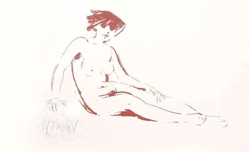 Leírás: Gyémánt László (1935-): Női ülő akt. Szitanyomat, papír, jelzett, művészpéldány E.A./Ex. jelzéssel. Lapméret: 50x70 cm / Screenprint on paper, signed, artist's proof.