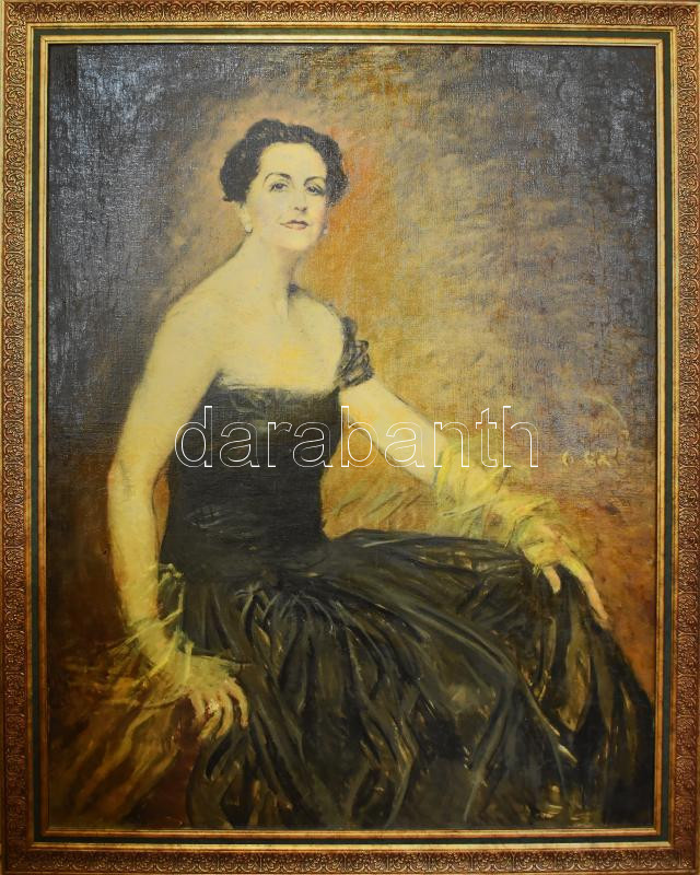 Márk Lajos (1867-1940): Elegáns dáma portréja. Olaj, vászon, jelezve jobbra középen. Proveniencia: Orosz Péter, a 2007-ben megjelent Márk Lajos kötet szerzőjének és családjának gyűjteményéből. Dekoratív fakeretben, 130×100 cm. KIZÁRÓLAG SZEMÉLYES ÁTVÉTEL, NEM POSTÁZZUK! / ONLY PERSONAL COLLECTION AT OUR OFFICE!