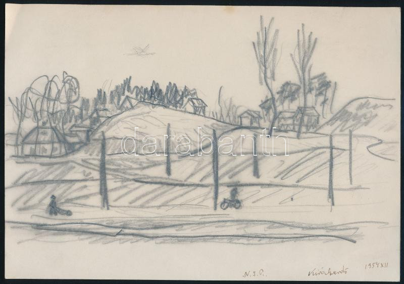 Leírás: Nolipa István Pál (1907-1986): Csepel-Királyerdő, 1954. Ceruza, papír. Jelzett. 16,5x23,5 cm
