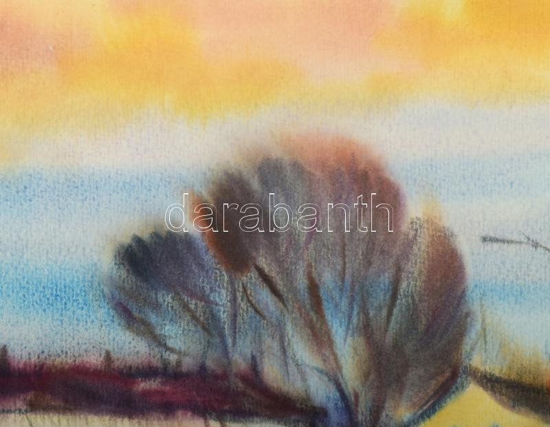 Leírás: Osváth Miklós (1935-2004): Esteledik, 1986. Akvarell, papír, jelzett és datált (Osváth Miklós 86). Dekoratív, üvegezett fakeretben, 38,5×59 cm