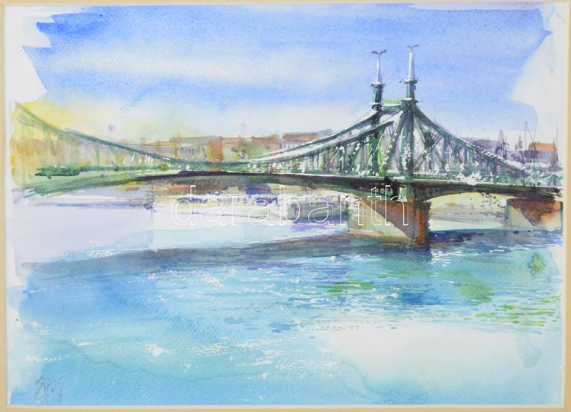 Leírás: Sipos Loránd (1969-): Szabadság híd, Budapest. Akvarell, papír. Jelezve balra lent. Hátoldalán autográf felirattal. Üvegezett fakeretben, 22,5×31 cm.
