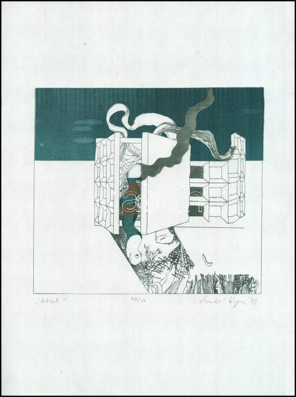 Leírás: Szabó Ágnes (1940-): "Ablak". Ofszet-litográfia, papír, jelzett és számozott (48/50). Az 1979-ben megjelent makói mappából. 20,5x22,5 cm