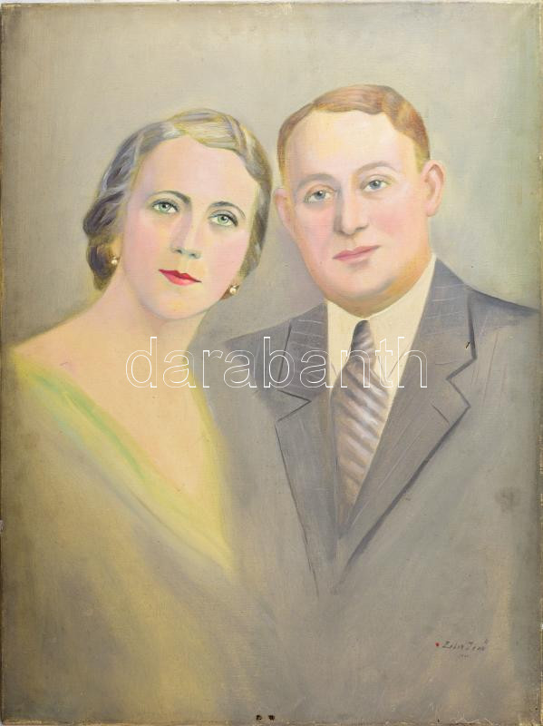 Leírás: Zobor Jenő (1898-1959): Szerelmespár. Olaj, vászon, jelzett, sérült, 80×60 cm