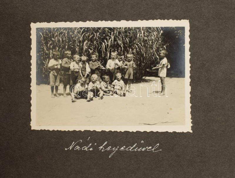 1939 ,,Székely Gyula apostoli kormányzó úr őméltóságának mély tisztelettel a tiszaszalkai Missziósház", emlékalbum kb. 40 db beragasztott fotóval, az albumlapokon feliratozva, 9x6 cm méretben
