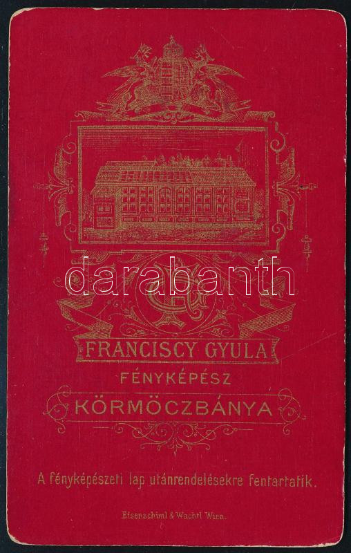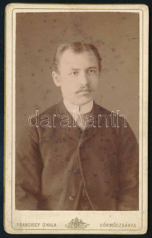 cca 1890 Férfiportré, keményhátú fotó Franciscy Gyula körmöcbányai műt... https://www.darabanth.com/hu/484-Gyorsarveres/484.0/Fotomuveszet/Foto~1000001/cca-1890-Ferfiportre-kemenyhatu-foto-Franciscy-Gyula-kormocbanyai-mutermebol-hatoldal~II3236390